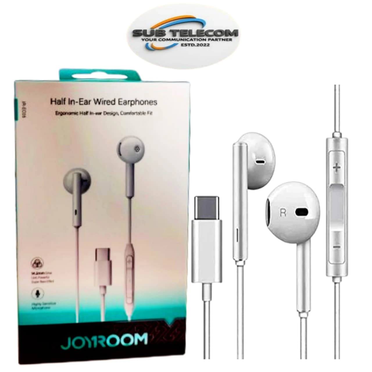 The image features the Joyroom JR-EC05 Type-C Half In-Ear Wired Earphones.